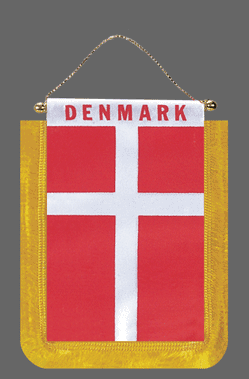 All of our polyester Mini Banners have high quality features such as: Flag image with country name brightly printed on both sides with interior liner, Gold plastic rod and suction cup hanger to attach to glass surface, Gold fringe trim edging the flag