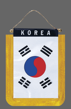 All of our polyester Mini Banners have high quality features such as: Flag image with country name brightly printed on both sides with interior liner, Gold plastic rod and suction cup hanger to attach to glass surface, Gold fringe trim edging the flag